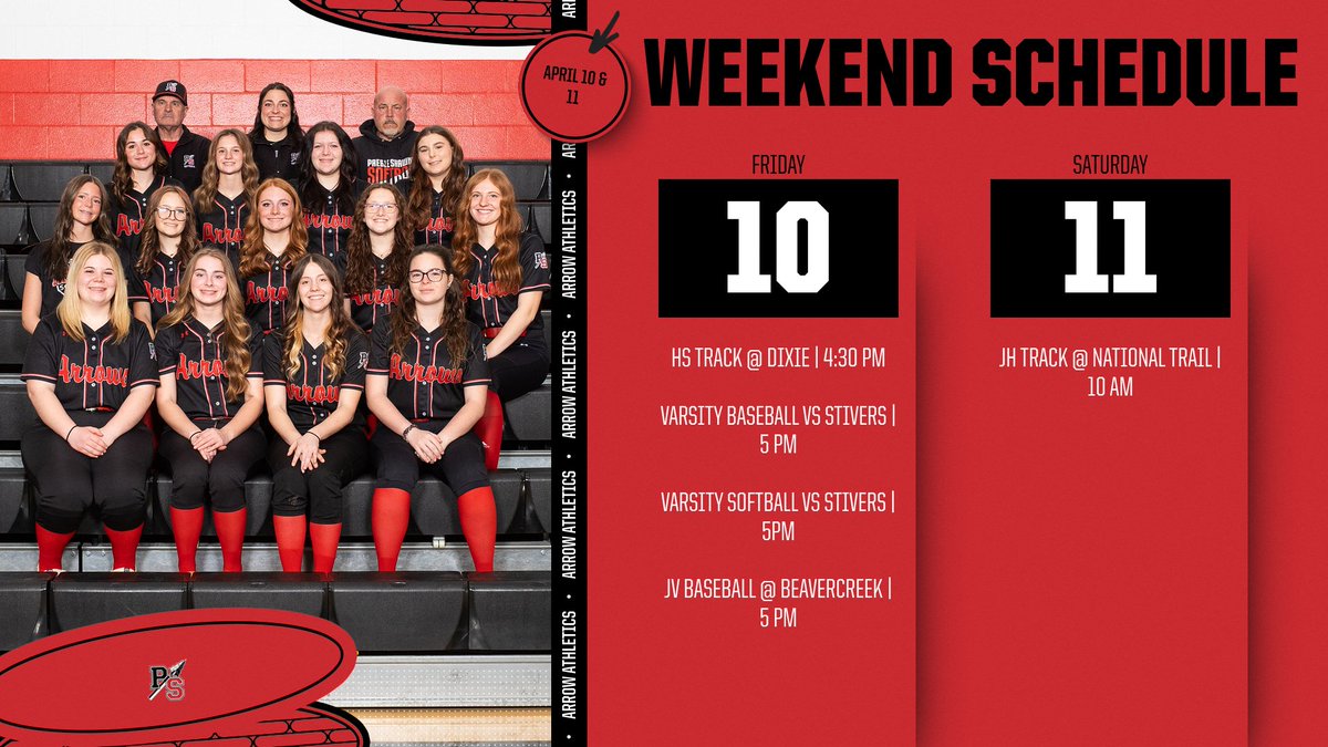 The weekend is almost here! Catch all the sports as our Arrows play on Friday, April 10 & Saturday, April 11. Go Arrows! 🙌🏆